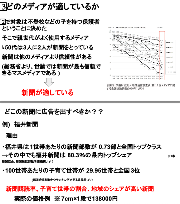 不登校・通信制の生徒と「保護者」に着目した新聞広告提案(2班)